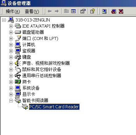 鼠标右键单击[我的电脑]选择[管理][管理]中打开[设备管理器],然后查看[智能卡阅读器]选项下是否有:“PC/SC Smart Card Reader选项”。