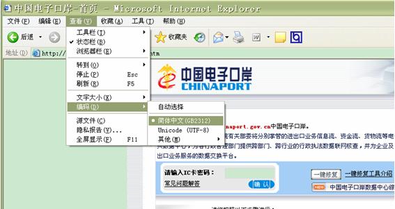 (1)调整IE浏览器,【查看】---【编码】 勾选“自动选择”然后选择简体中文(GB2312)