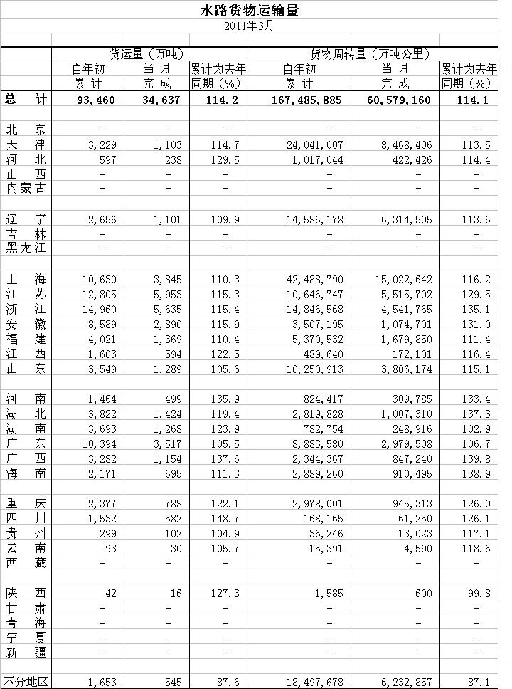 2011年3月水路货物运输量