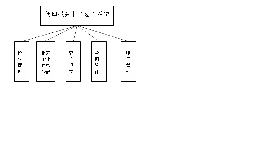 该系统包含:授权管理、报关企业信息管理、委托报关、查询统计和账户管理。系统总体功能结构图如下: