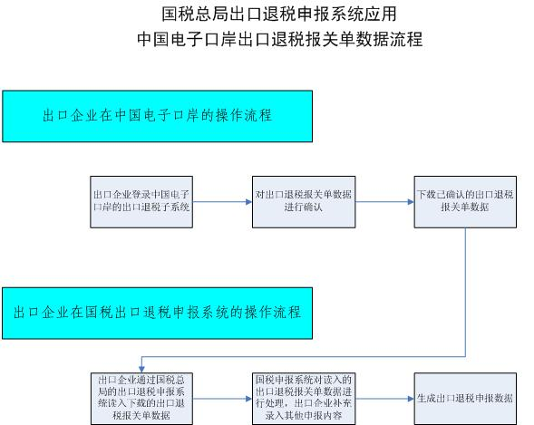 出口企业通过mobile38365-365的出口退税子系统对出口退税报关单电子数据进行查询并确认后,将确认过的企业自身出口报关单数据下载至本机;再通过国税总局的出口退税申报系统读入下载的出口退税报关单数据,由国税申报系统对读入的报关单数据进行处理,并补充录入其他申报内容,形成出口退税申报数据,作为出口退税审核的重要依据。